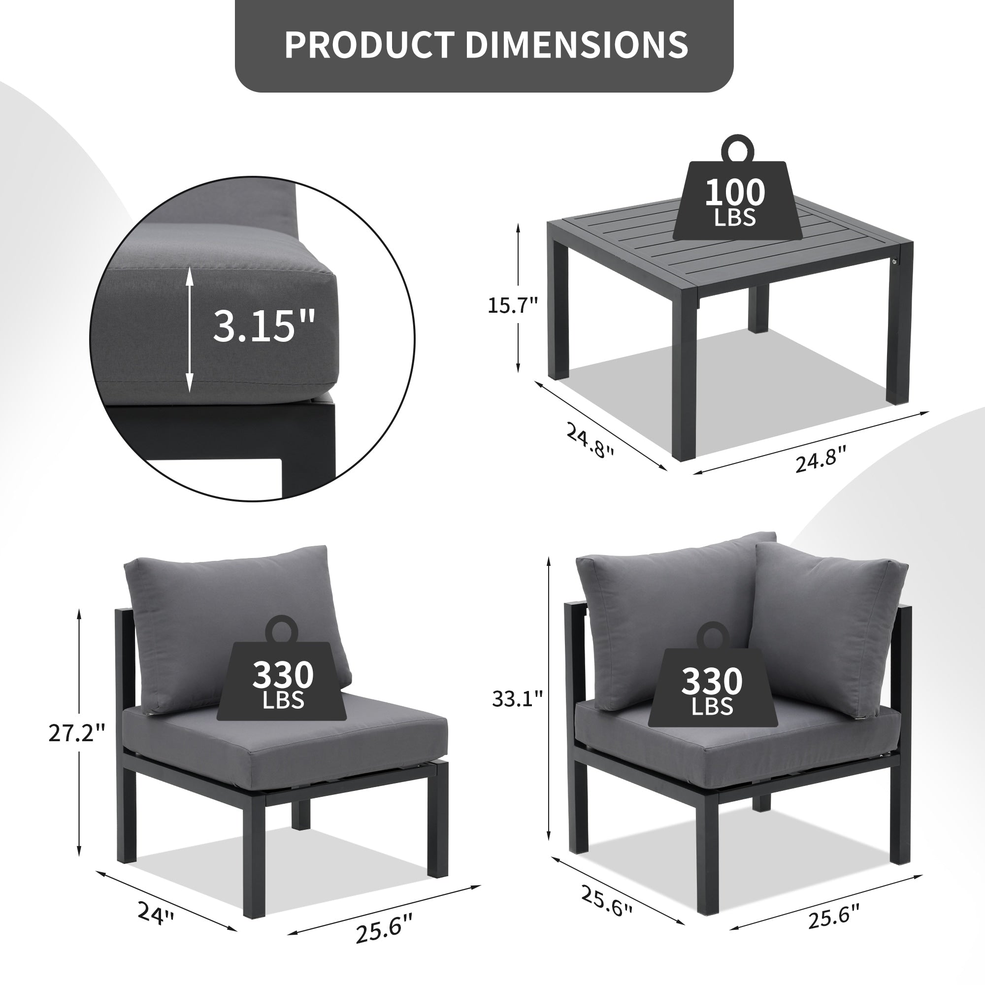 Zenova 5/7 Pcs Aluminum Patio furniture Set , Outdoor Sectional Sofa