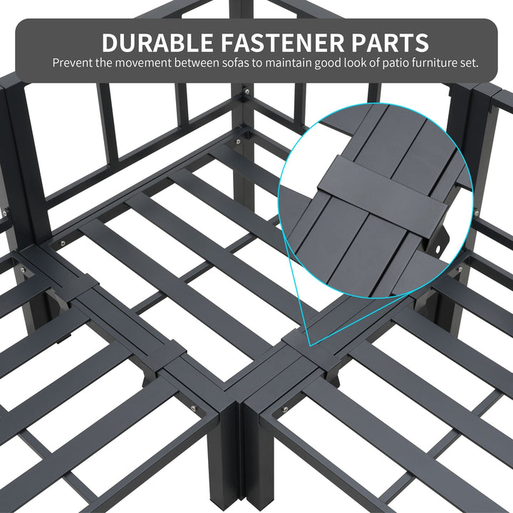 Featuring non-slip foot pads, Ainfox patio chairs ensure a secure grip on various types of surfaces, providing enhanced stability. Additionally, the non-slip plastic foot pads also protect your floors from scratches or damage caused by friction.Durable Fastener Parts prevent the movement between sofas to maintain good look of patio furniture set - Easy assembly: