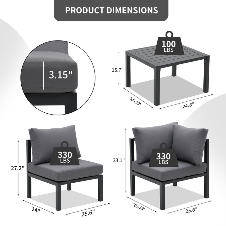 Zenova modern patio furniture set is made of a powder-coated aluminum frame that is both solid and durable while being lightweight for easy handling and storage. Unlike traditional iron or steel furniture, aluminum was once known as the aristocracy of metals because of its unique properties. The surface of aluminum will naturally form an oxide layer and can protect itself from rusting, fading, and corroding in all kinds of weather. This ensures long-lasting functionality and enjoyment, allowing you to relax and entertain for years to come. - Ergonomic for Everyone: