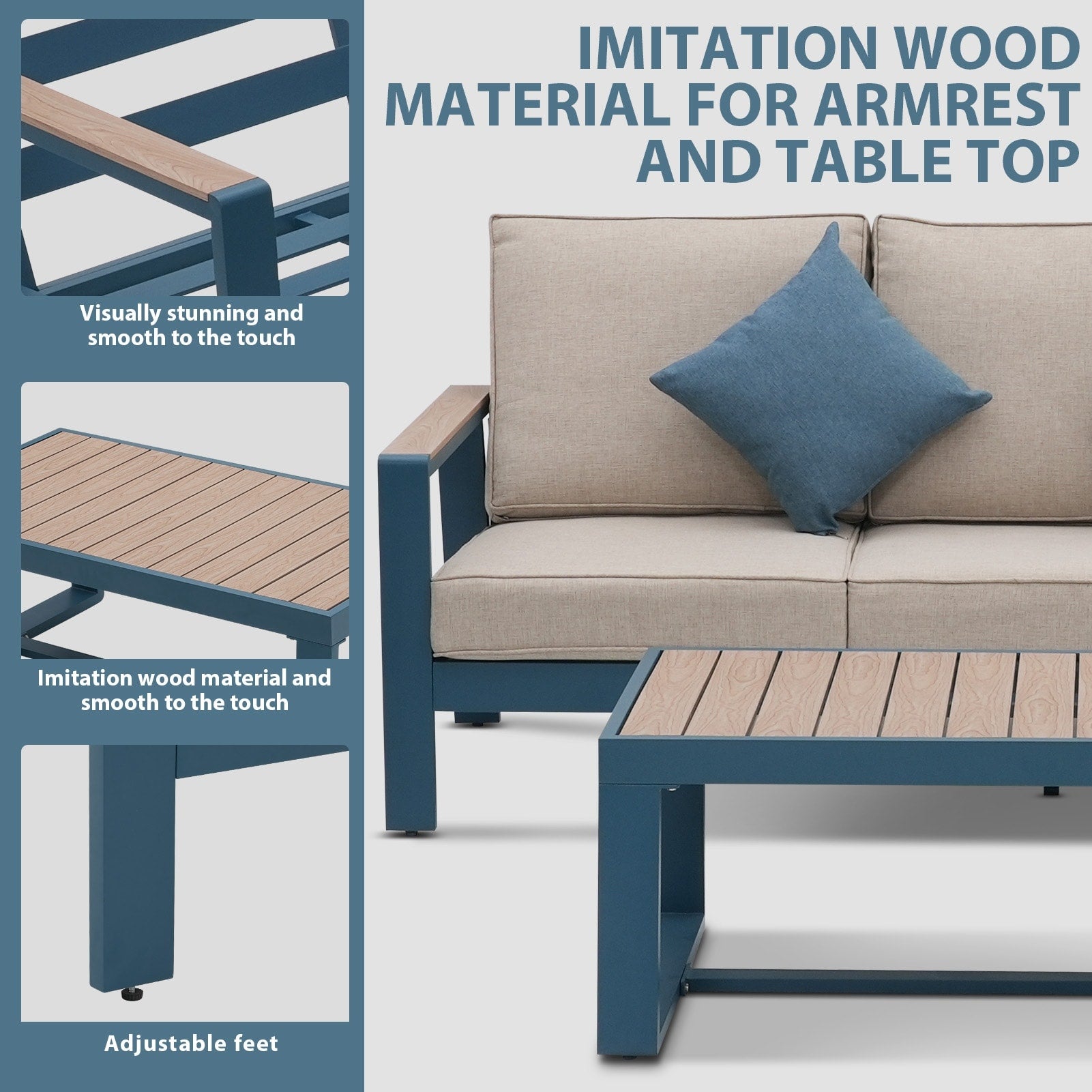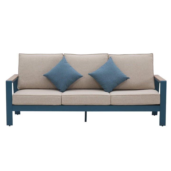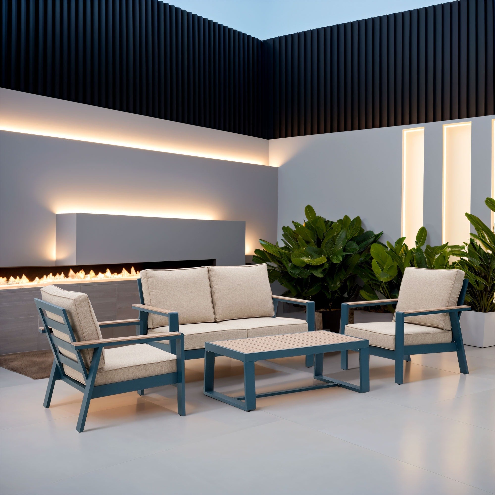 Our Zenova Aluminum Outdoor Sofa is a stylish and functional piece of furniture for your patio or outdoor space.Zenova outdoor sofa is made from high-quality aluminum, which is durable and resistant to rust and weather elements. The aluminum frame is lightweight and easy to move around, making it convenient for rearranging your outdoor seating area.Whether you're hosting a barbecue, enjoying a quiet evening alone, or entertaining guests, these furniture sets provide a comfortable and stylish seating solution.