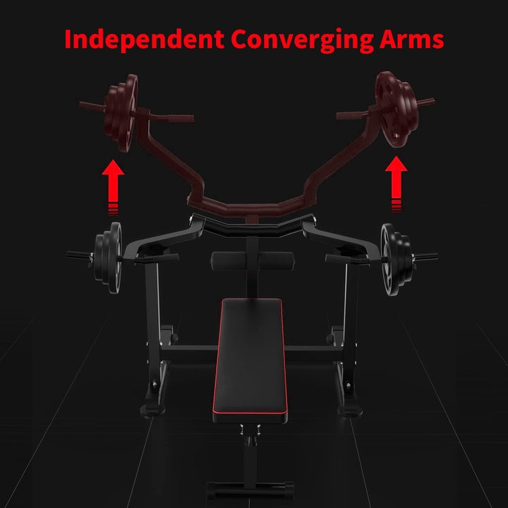 Zenova Bench Press Set Chest Press Machine with Independent Converging Arms and Dumbbell Rack