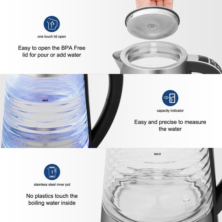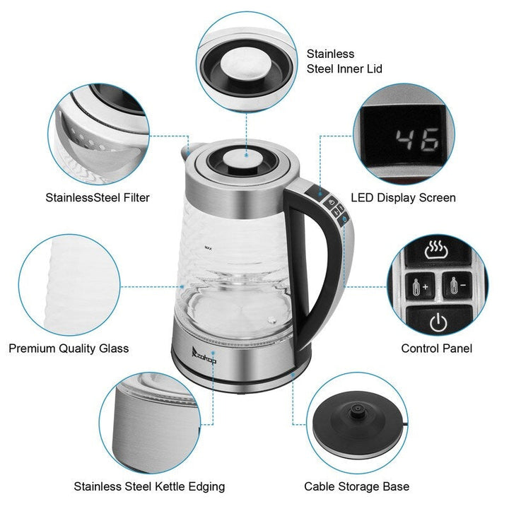 ZOKOP 0.58Gal 1200W High Borosilicate Glass Electric Kettle with Electronic Handle