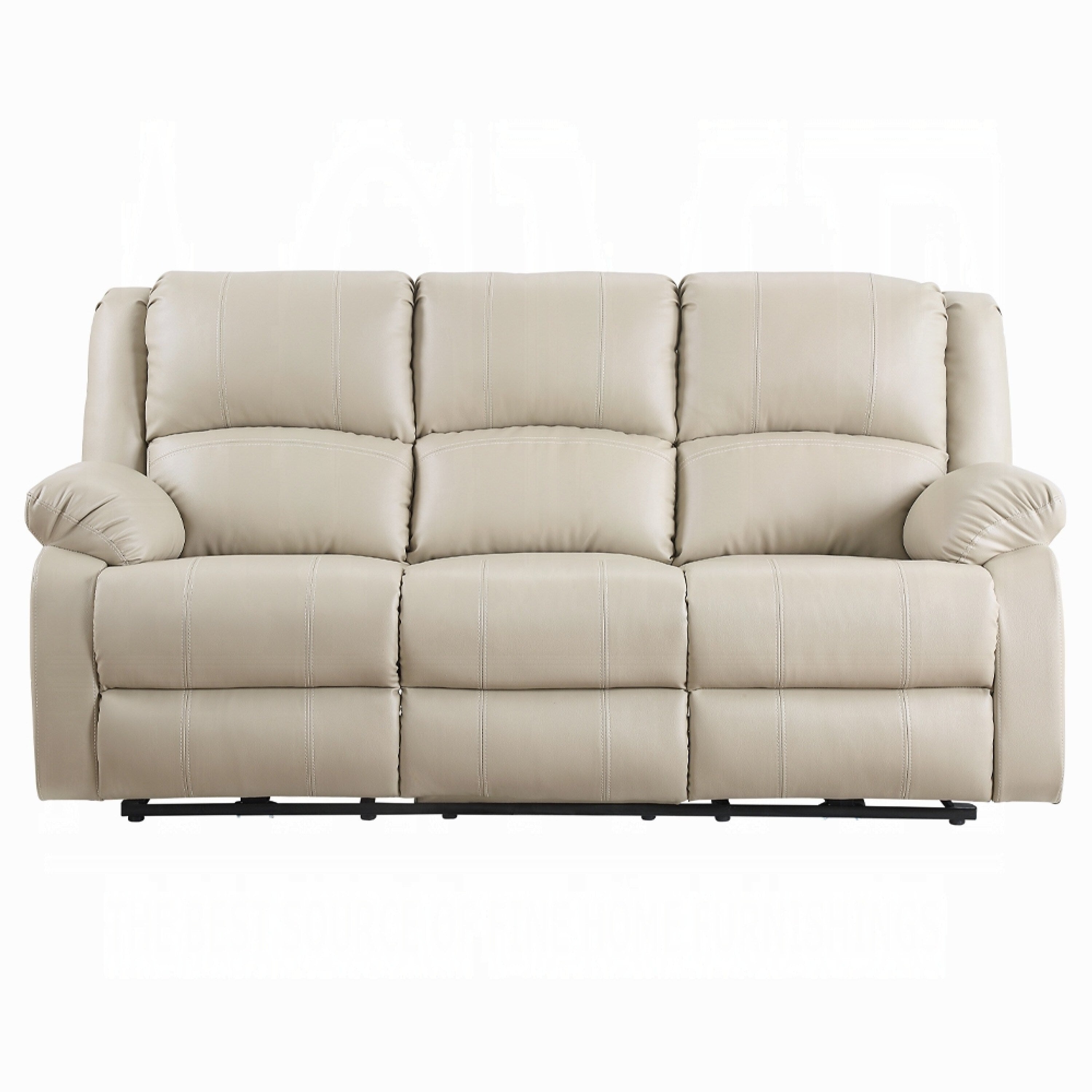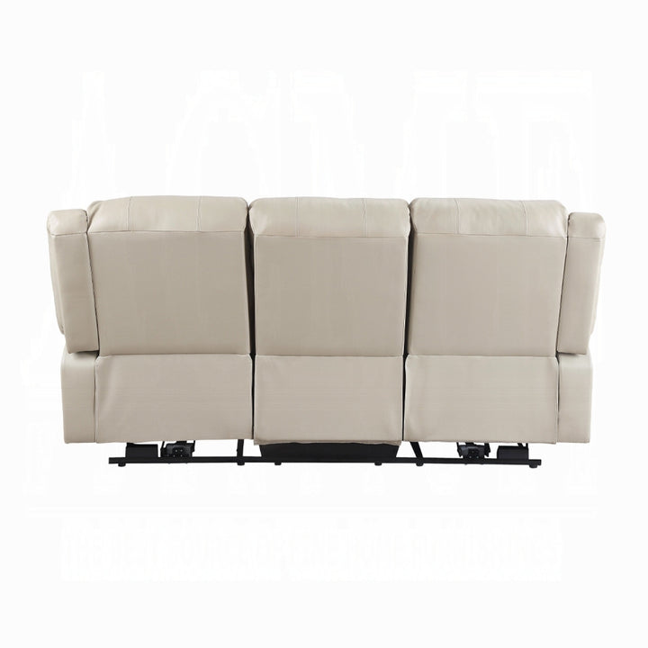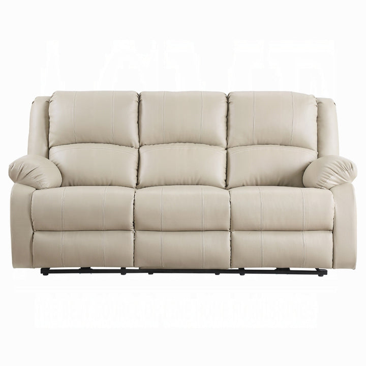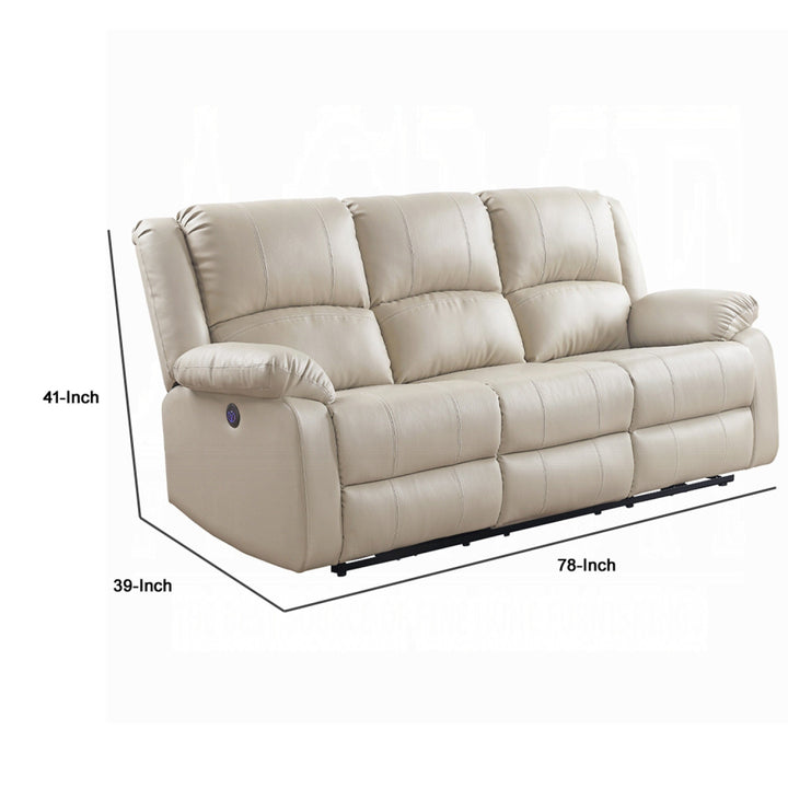 Zuru Power Reclining Sofa, 78 Inch, Pillowed Arms, Beige Faux Leather