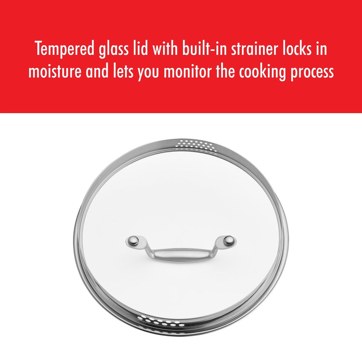 - Tempered glass strainer lid ensures easy monitoring of cooking and has handy built-in strainer