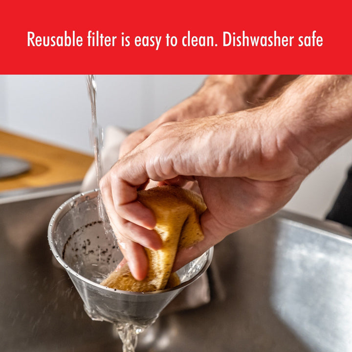 - Reusable filter won’t clog or alter the flavor of coffee