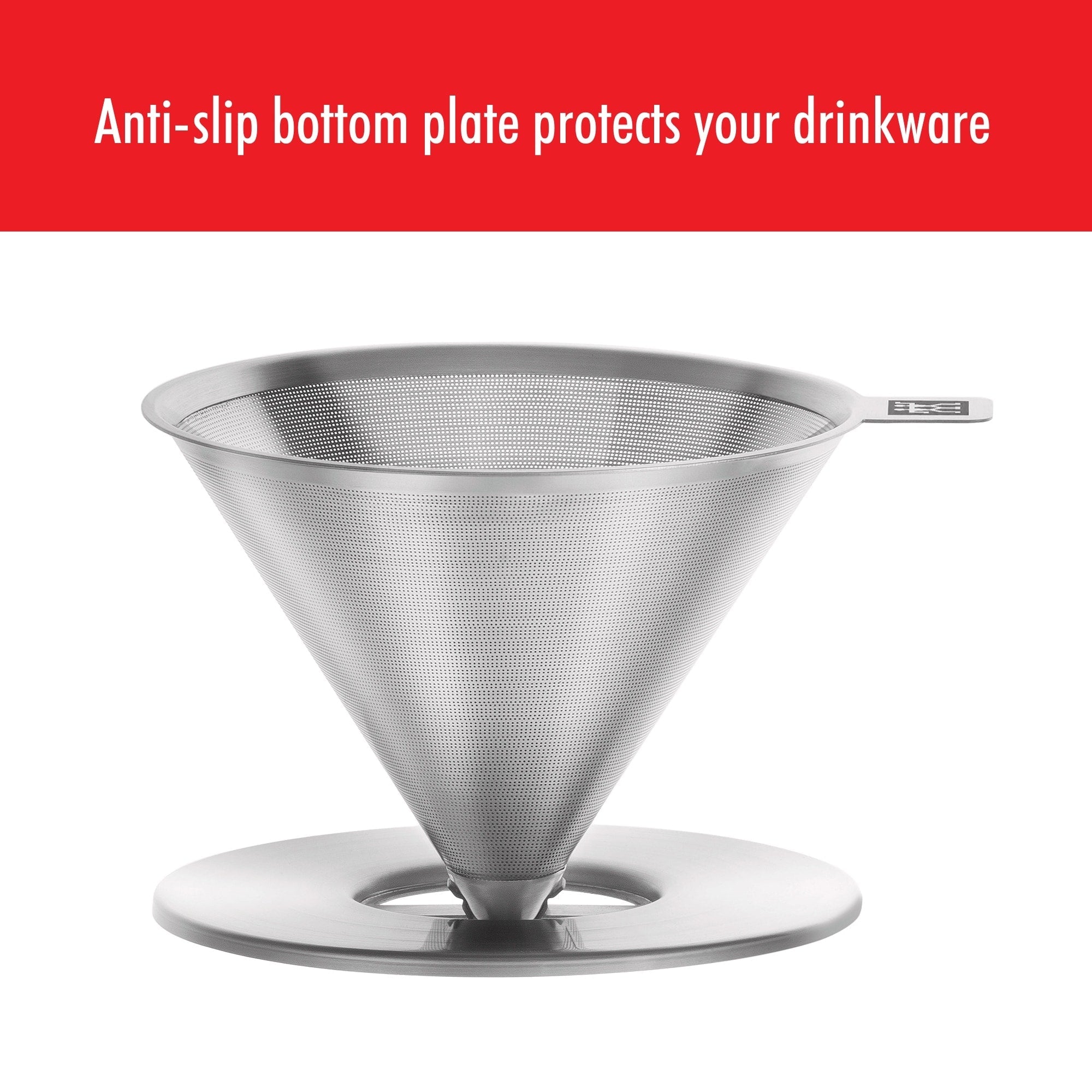- Anti-slip bottom plate detaches from cone filter for space-saving storage