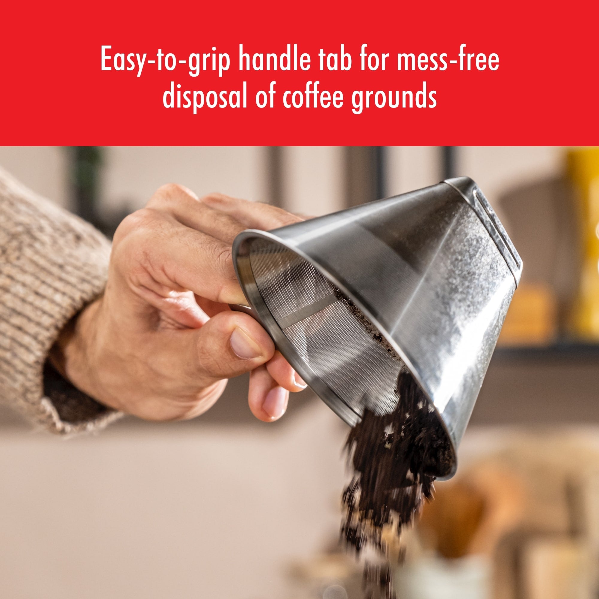 - Easy-to-grip handle tab for mess-free disposal of coffee grounds